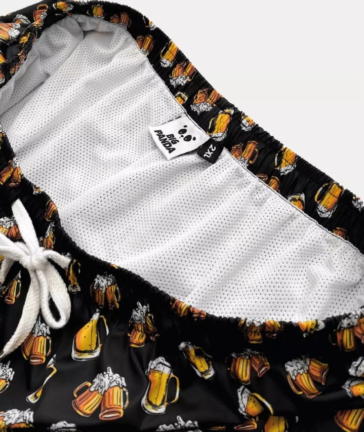 Ropa de base negra con diseño de chops de cerveza. Taslán impermeable y malla interna color negro. Cintura elástica con pitas para ajuste. Bolsillos laterales con cierre.